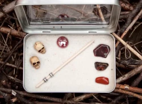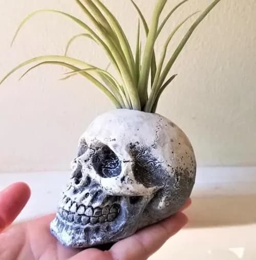 In contrast to your typical zen garden, this one will bring more spook than it will zen. This festive desk garden features two skulls, a wand, and three gemstones. Just what every witch needs.