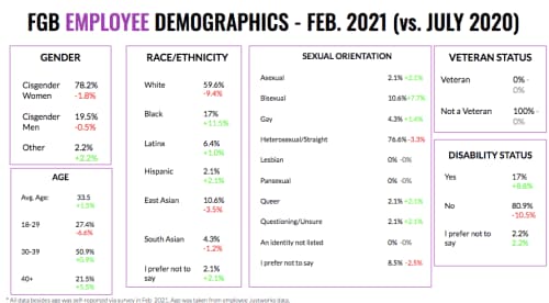 Since July 2020, we have surveyed and published this information bi-annually and used it to inform our recruiting practices. We have also implemented demographic questionnaires for all incoming job applicants, required diverse slates for all open roles at our company and expanded the number of job listing partnerships to ensure our applicant pool is representative and diverse. Simply put, we are creating accountability and transparency, and committed to continuous improvement.