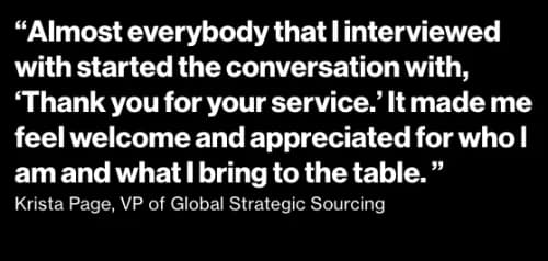 Complex problem-solving, decision making, operational excellence and breakthrough thinking — these are just a few of the skills Krista Page took with her when she transitioned from the military into the civilian world. She also carries these skills into her role as Verizon’s VP of Global Strategic Sourcing.