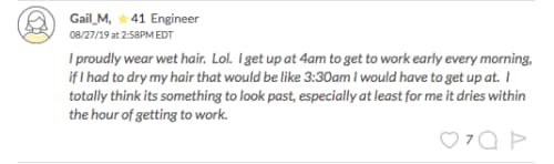 One FGB’er, engineer Gail_M, explained that in order to show up for work with clean hair that’s already dry, she’d have to wake up at 3:30 a.m. And we can’t blame her lack of interest in that!