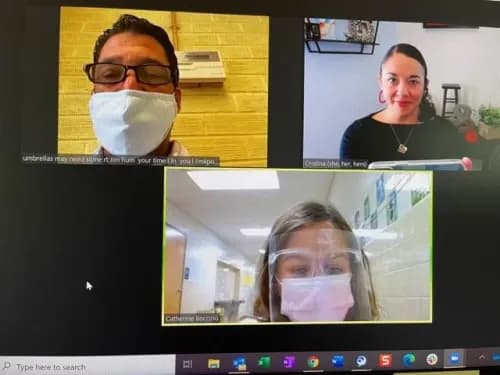 Santos on a Zoom call with her husband and daughter as part of a student-led parent conference for school. Photo courtesy of Capital Group.