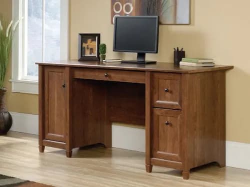 With numerous shelves, cabinets, and a hide-away drawer, this desk will keep you organized to the max. The wide desktop will provide plenty of workspace, too.