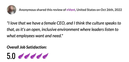 And their global reach isn’t their only claim to fame — nVent is also a certified Great Place to Work with a goal of making their industry more diverse. As a global manufacturer, nVent is doing their part to diversify traditionally male-dominated industries such as engineering, operations, and sales. By 2025, nVent aspires to increase the representation of women in management globally by 20% compared with 2020.