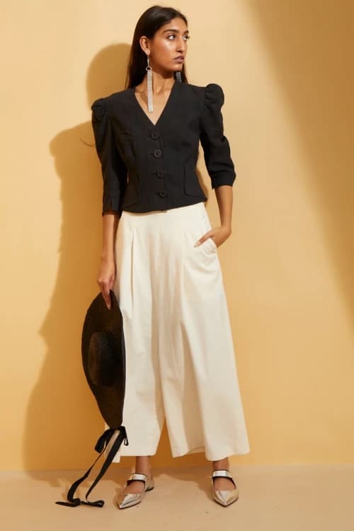 This jacket is adorable and professional and will work with white or black pants or classic skirts. Buy it at Hope for Flowers.