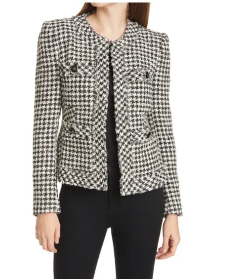 This gorgeous jacket manages to look both trendy and professional simultaneously. Pair it with solid black pants to complete the look. Buy it at Nordstrom.