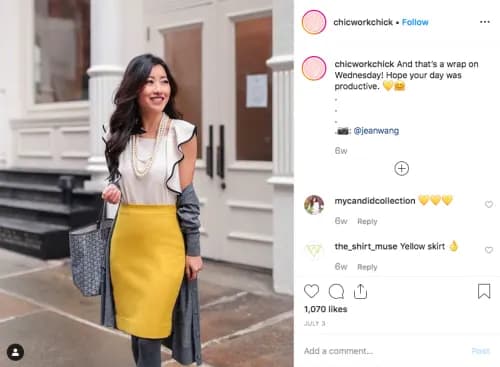 Go for an dress code-approved boho look by adding a peasant skirt. Selecting a warm color, vibrant color brings in the sun’s glow. Dress it up with a low heel for a look that lets you seamlessly transition from the water cooler to happy hour.