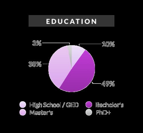 On top of experience in the field, the participants also proved to be highly educated. A full 77 percent of the women who participated had a Bachelor’s degree or higher — and an incredible 41 percent had a master's degree or PhD to boot.