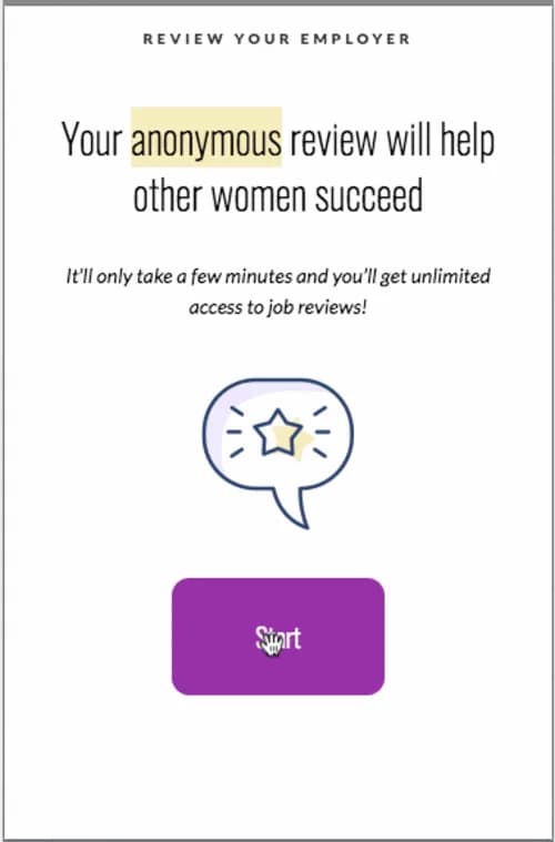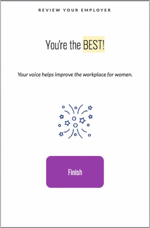In addition to this design revamp, the review questions have been updated to more comprehensively investigate what makes a company culture great (or not so great) for women. We’ve made our “About You” questions optional and separated them from your opinions about your employer, allowing you to submit your survey without sharing any personal information. Meanwhile, our newest questions ask for information about your company’s management team, location and benefits. By leaving a review, you’re increasing workplace transparency (and letting other women know what to expect from your employer).
