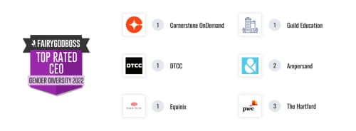 Our Best Companies lists are 100% based on anonymous employee reviews left on Fairygodboss, and scores for four of the lists are based on responses to three questions about overall job satisfaction, perceived gender equality at work, and recommendations to other women about working at the company. For our Top CEOs list, scores are determined by the average response to the question: Do you think your CEO supports gender diversity?