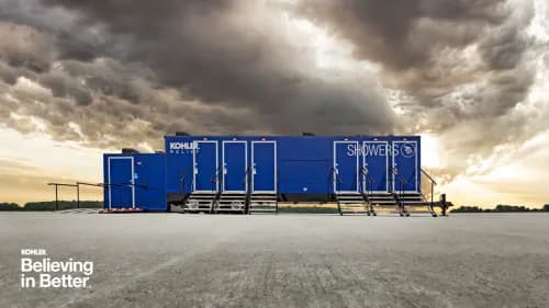 Thanks to the “passion and ingenuity” of Kohler team members, she shared that the company has been able to repurpose manufacturing space to assemble over 200,000 face shields, as well as deploy a KOHLER Relief Showering Trailer to hard-hit New York City. The 42-foot unit is stationed at the Javits Center, currently being used as a 1,200-bed temporary field hospital, and is serving health care workers and volunteers on the virus’ frontlines.