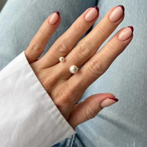 Keep your French manicure interesting by opting for an unexpected tip color—like this deep burgundy via @baraandbeauty.
