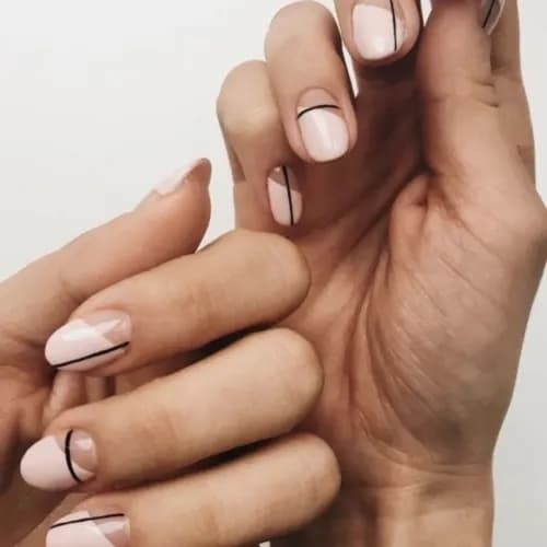 This manicure from Lemon Stripes perfectly mixes neutrals, lines, and geometric shapes for a look that ticks all the boxes: interesting, unique, and professional.