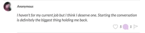 For women who haven't yet asked for a raise at some point during their careers, the reasons they haven't are manifold. As part of a recent conversation about salary negotiations in the Fairygodboss Community, one FGB'er asked community members to share the stories of why they haven't yet asked for a pay raise. What's stopping them? The post quickly took off, with close to 50 women sharing their takes. Below, we've rounded up a few of the most common answers.