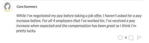This FGB’er hasn’t had to actually ask for a raise and believes she’s always been rewarded with a raise when one would normally expect it. She calls herself lucky, and we agree!