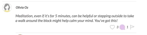 Another great tool we can use to calm ourselves is meditation. This FGB’er suggested a meditation meet-up group, which we love! You are more likely to actually go and do something if you have others holding you accountable — we’ve all heard this before, and it’s true. Also, being able to vent to people who love and support you in this type of setting can be beneficial. Turn to your friends and family when things get so stressful you don’t know what to do.