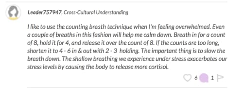 One FGB’er recommended simply stepping outside and going for a walk. We love this advice. Even just five minutes of fresh air can help clear your head and relax your mind. And that five minutes won’t put you far behind with your work. Plus, you’ll probably be more productive after taking five minutes to yourself and allowing your head to cool down.