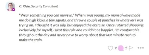 Maybe your day-to-day doesn't involve throwing many punches. We'll buy that. But test-driving how well you can move in an article of clothing is a great exercise to determine how comfortable you'll ultimately feel in it! At the very least, you're not likely to buy too-tight jeans again.