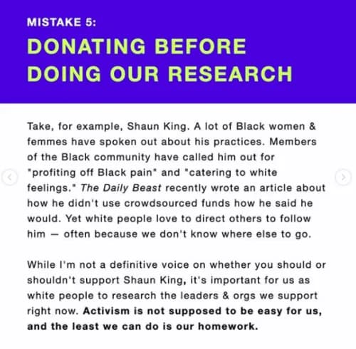Not every organization or individual that's "fighting for racial justice" is supporting to work or desires of Black activists and organizers. Before you give money, do your homework to make sure you're making a donation you can be proud of.