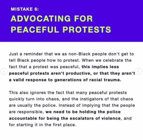 White people don't get to tell Black people how to respond to generational trauma, as Winston points out. We also shouldn't patronize the Black community by telling them what's "effective" for their political causes.