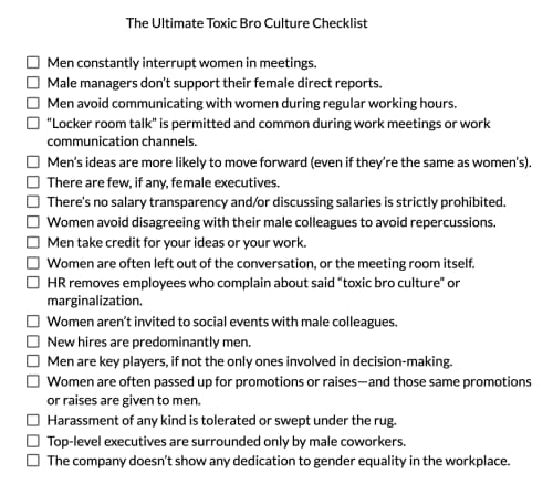 Here’s the ultimate checklist to prove that toxic bro culture is rampant in your workplace, too.