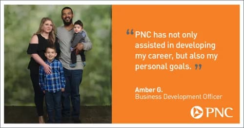 PNC has not only assisted in developing my career, but also my personal goals. I have the privilege of enjoying coming to work every day. Through my job, I am able to educate and make a difference in my community on a daily basis. Additionally, I have an amazing work-life balance that allows me to be both a great employee and parent at the same time. I am proud to say I am a mom who has a fulfilling career without sacrificing time and memories with my family.