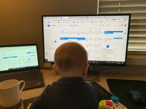 To say this was challenging would be an understatement. There were many arguments and a significant amount of tears shed with the stress of passing the baby throughout the day. While both of our companies were extremely understanding of what we were going through, we had self-induced stress of trying to maintain the workday we normally would without our son at home.