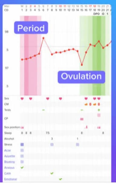 Fertility Friend enables you to record details of your health and behaviors to educate you about signs that you may be ovulating and offers plenty of resources, as well as period and ovulation tracking.