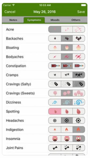 The app also allows you to records details like your mood and sexual activity and offers a visual overview of your data.